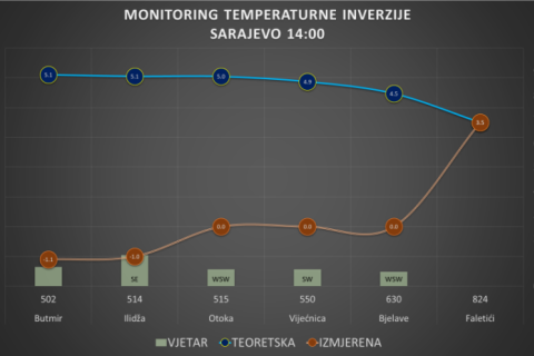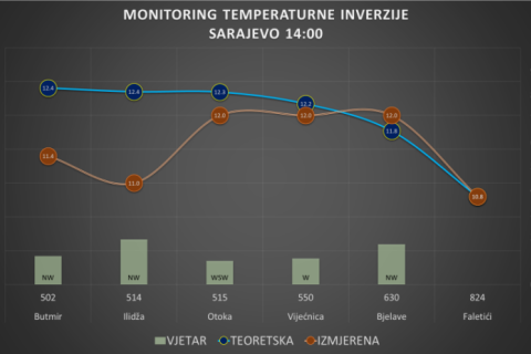 Trenutna mjerenja kvaliteta zraka u Kantonu Sarajevo pokazuju povećane koncentracije PM10 čestica koje na svim automatskim stanicama prelaze 90 µg/m³, što je direktna posljedica spuštanja inverzionog sloja i nedostatka vjetra.