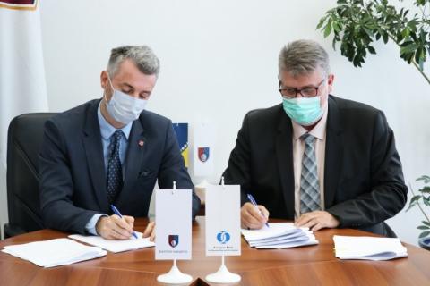 Premijer Kantona Sarajevo Edin Forto i ministar komunalne privrede, infrastrukture, građenja, prostornog uređenje i zaštite okoliša KS Enver Hadžiahmetović potpisali su danas sa Evropskom bankom za obnovu i razvoj ugovor o preuzimanju kredita od osam miliona i granta od dva miliona eura od Evropske unije, za finansiranje utopljavanja javnih zgrada, u okviru Projekta ''Energijska efikasnost u javnim objektima KS".