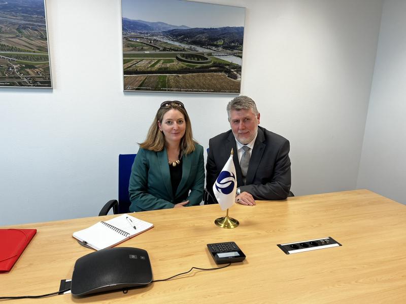 Ministar komunalne privrede, infrastrukture, prostornog uređenja, građenja i zaštite okoliša Kantona Sarajevo Enver Hadžiahmetović održao je radni sastanak sa direktoricom bosanskohercegovačkog ureda Europske banke za obnovu i razvoj (EBRD) Manuelom Naessl.