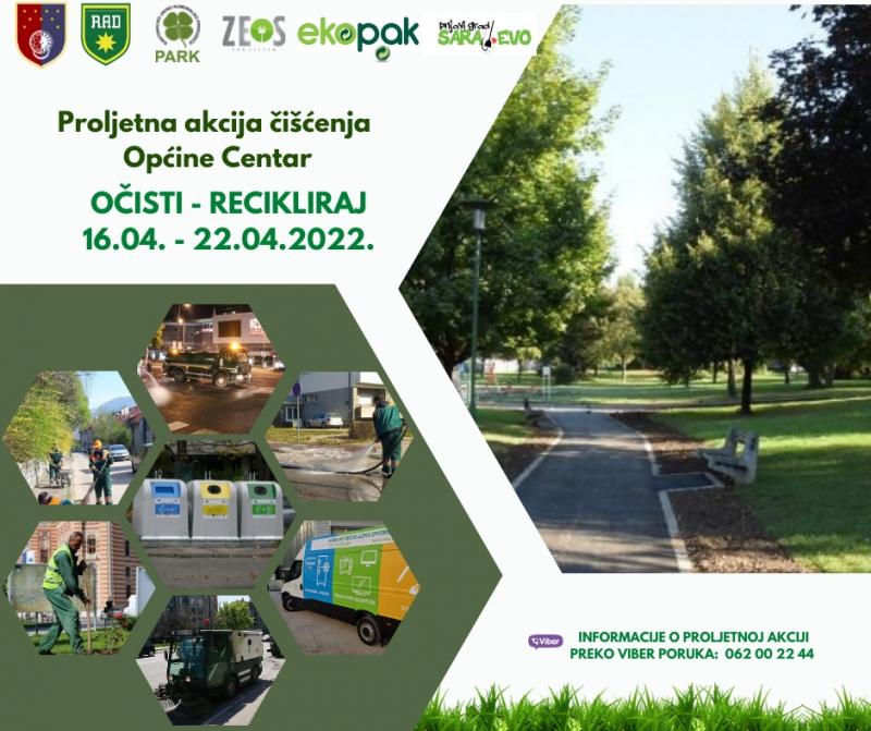 Akcija OČISTI - RECIKLIRAJ na području Općine Centar podrazumijeva aktivnosti koje su bile provođene prethodno i u Starom Gradu, a koje će realizovati komunalna preduzeća zajedno sa partnerima na ovom projektu.