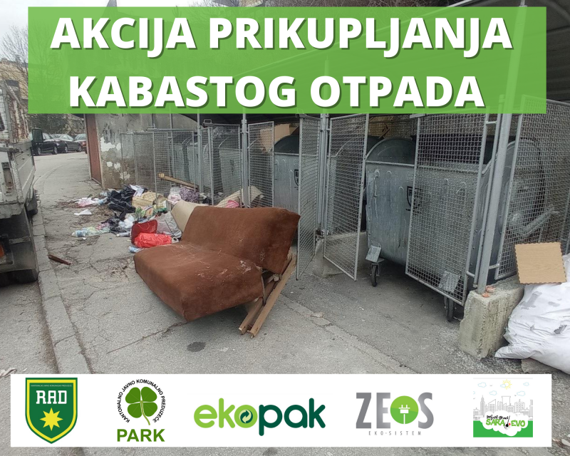 Vlada Kantona Sarajevo i Ministarstvo komunalne privrede, prostornog uređenja, građenja i zaštite okoliša Kantona Sarajevo u saradnji sa komunalnim preduzećima RAD i Park, te ostalim partnerima - ZEOS eko-sistem, EKOPAK i NVO Prljavi Grad Sarajevo, organiziraju proljetnu akciju prikupljanja kabastog otpada i unapređenja odvojenog prikupljanja otpada.