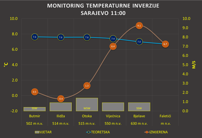 Trenutna sinoptička situacija ukazuje na relativno stabilno vrijeme, vjetar slab do umjeren južnog i jugoistočnog smjera, sa prisustvom temperaturne inverzije večeras i sutra u jutranjim satima. S obzirom na najavljene visoke dnevne temperature, pojava temperaturne inverzije će biti kratkotrajna i neće usloviti značajnija nakupljanja zagađujućih materija, pojašnjeno je iz Stručnog tijela KS.